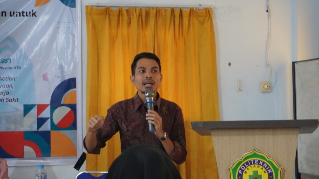 Beliau juga membagikan pengalaman nyata dari RSUD Provinsi NTB, di mana pendekatan kepemimpinan yang kolaboratif berhasil menurunkan tingkat insiden kerja secara signifikan, dan menyoroti pentingnya komitmen bersama dari seluruh level organisasi.